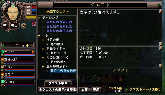夕方インして人面クエをセリスさんと支援さん3人でいって