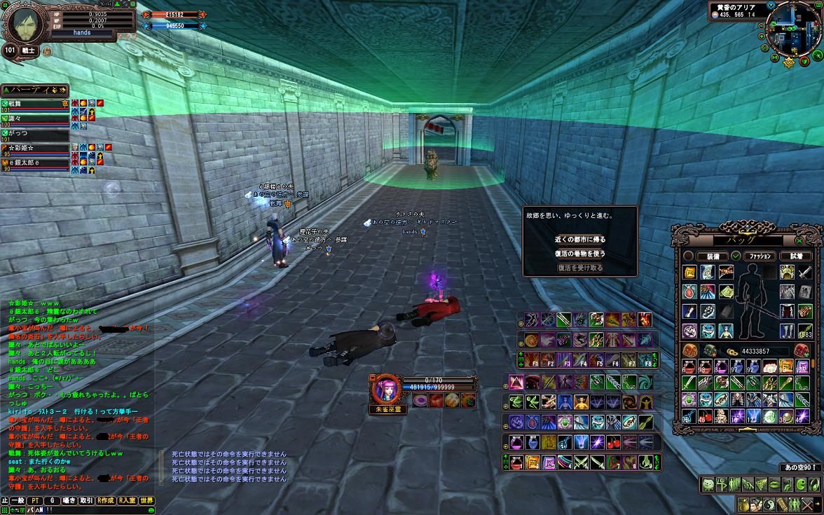途中でしんでしまうと戻ったときNPC廻りはいっぱいのMOBで溜まってるだろうから、ここからの満点が手間取る。