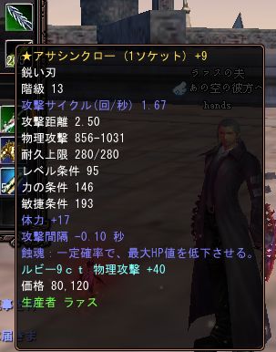今後の予定として火力欲しさにアサシンを+10に