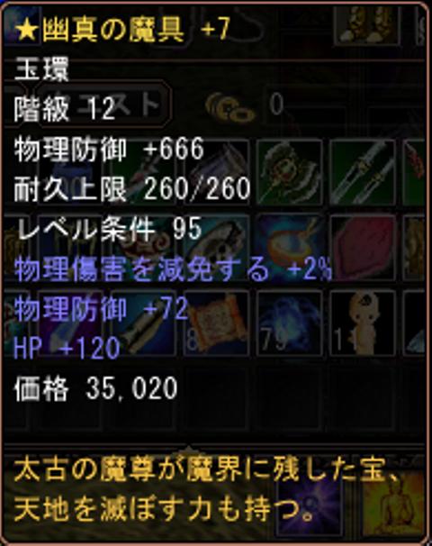 幽真の魔具物理防御 +308 物理傷害を減免する +2% (95クエ品)