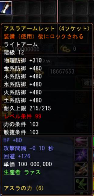 アスラの力:アスラの軽鎧・上、下、腕、靴、首飾り、お守りのいくつかを同時に装備していると以下の効果を発揮する