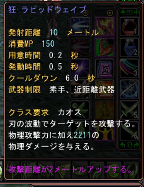 | スカイロンド | 100 | 247 | 108 | 763-1271 | 八陣 クリティカル+3% 攻撃距離+2.00 完全なる石 |