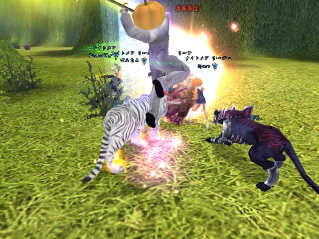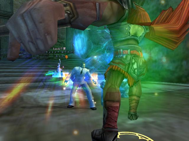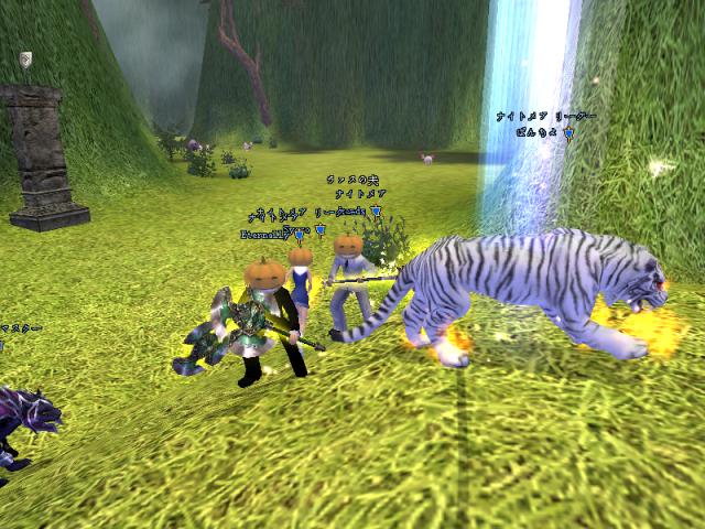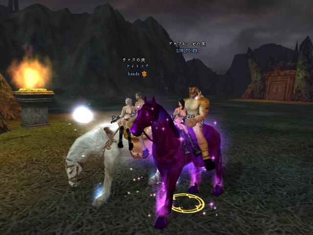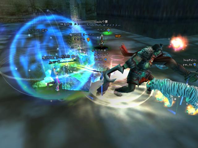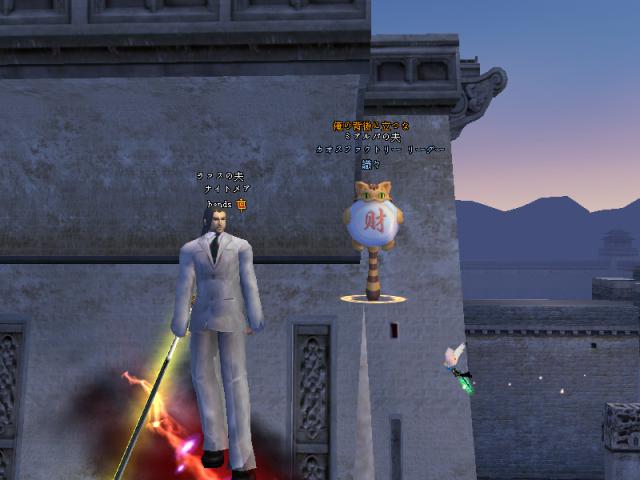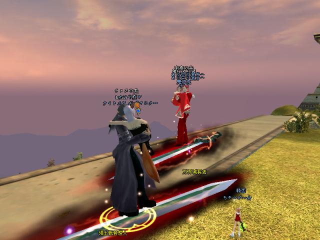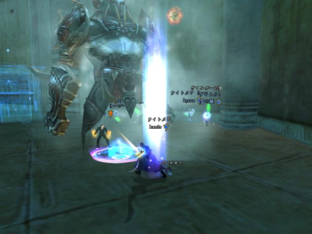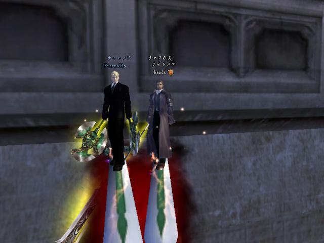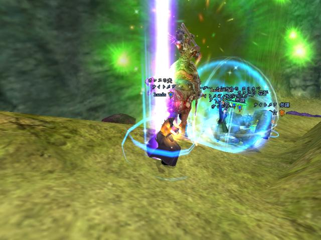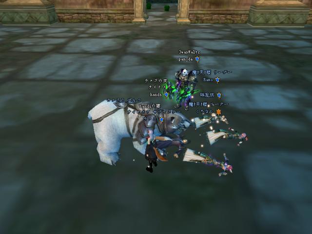 昨日はGMのSYとPT組んで戦士二人で79Dどこまで行けるか挑戦しよう!!と意気込んで夜鳴きまで行ったんですが、途中ETさん達が範囲狩りをしているとのことなので、二人で邪魔しに行きましたw